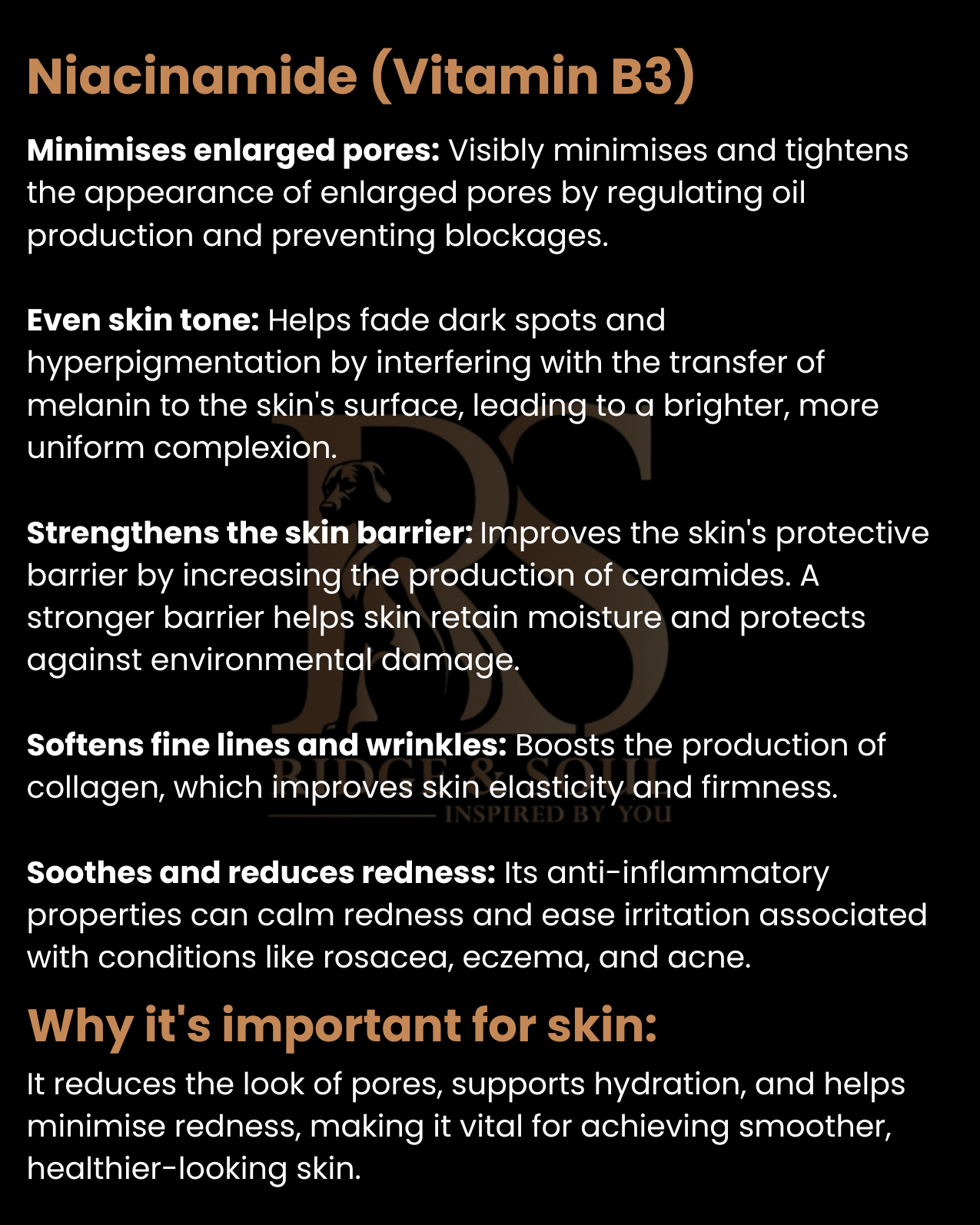 A multi-tasking vitamin that strengthens the skin barrier, improves uneven tone, and enhances overall skin resilience.